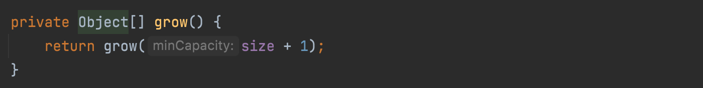 - grow()에서 grow(int minCapacity)를 호출할 때, minCapacity로 size+1을 넣어 호출했다.