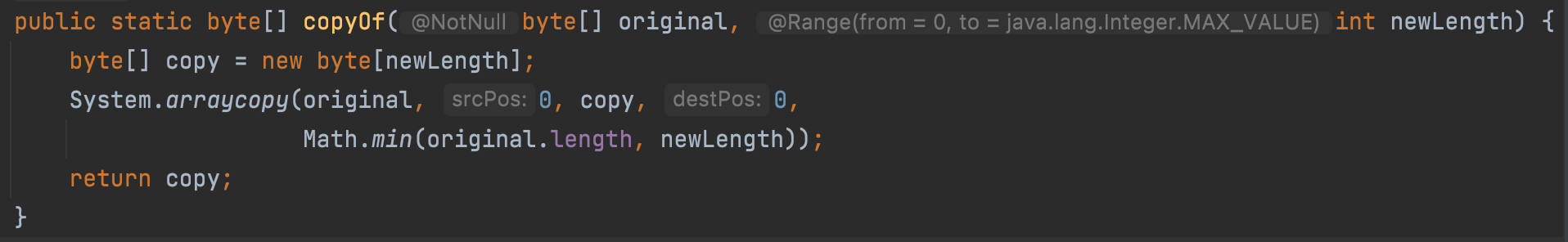 Arrays.copyOf(byte[] original, int new Length)